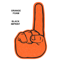 Show your pride and enthusiasm with these popular number one foam fingers! These bright and colorful foam mitts fit over your hand to really emphasize and shout out your message. Made of open-celled foam in a variety of sizes, these novelties are imprinted with a high-quality waterproof ink on either 1 or 2 sides. Made of colored, flexible polyurethane, safe and fire retardant. Made in the USA.