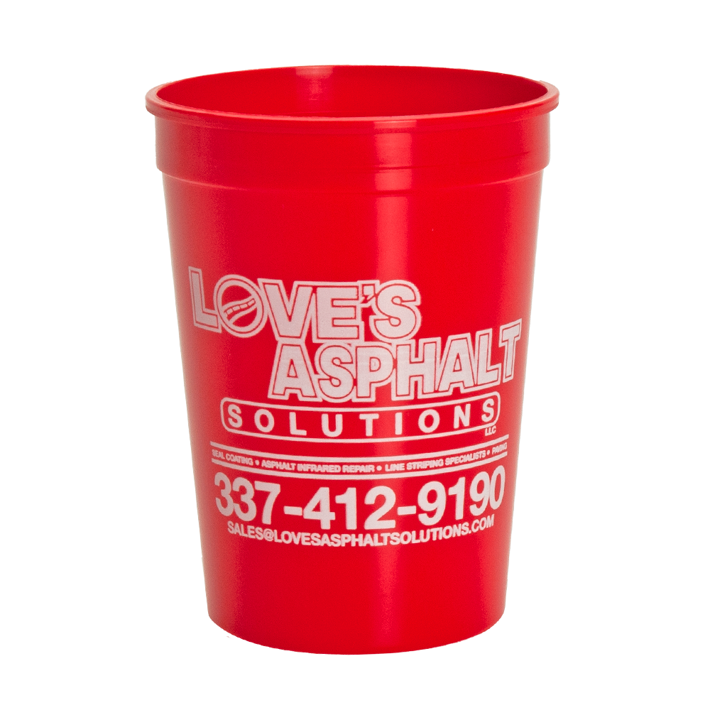 These reusable 12 oz. Plastic Smooth Stadium Cups are top rack dishwasher safe and available in 14 sports colors. No extra charge for same color second side imprint. Add a Black or Clear lid which comes with or without a slit for straw.